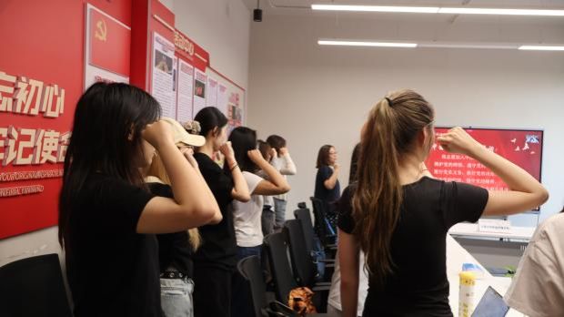随后,在师生党员同过“政治生日”的环节中,由蒋宁平老师带领在场师生们重温了入党誓词。一句句铿锵有力的誓言,让党员们许下庄严承诺,牢记共产党员的政治责任和历史使命。