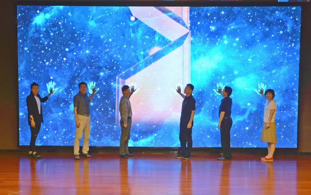 仪式最后,澎湃新闻网常务副总编辑李嵘、封面新闻执行总编辑周琪、解放日报(上观新闻)数据新闻总监尤莼洁、SMG 看看新闻网络新闻总监叶文、3044AM永利公司党委书记邓江、3044AM永利经理严三九共同启动上海高校智能媒体节。