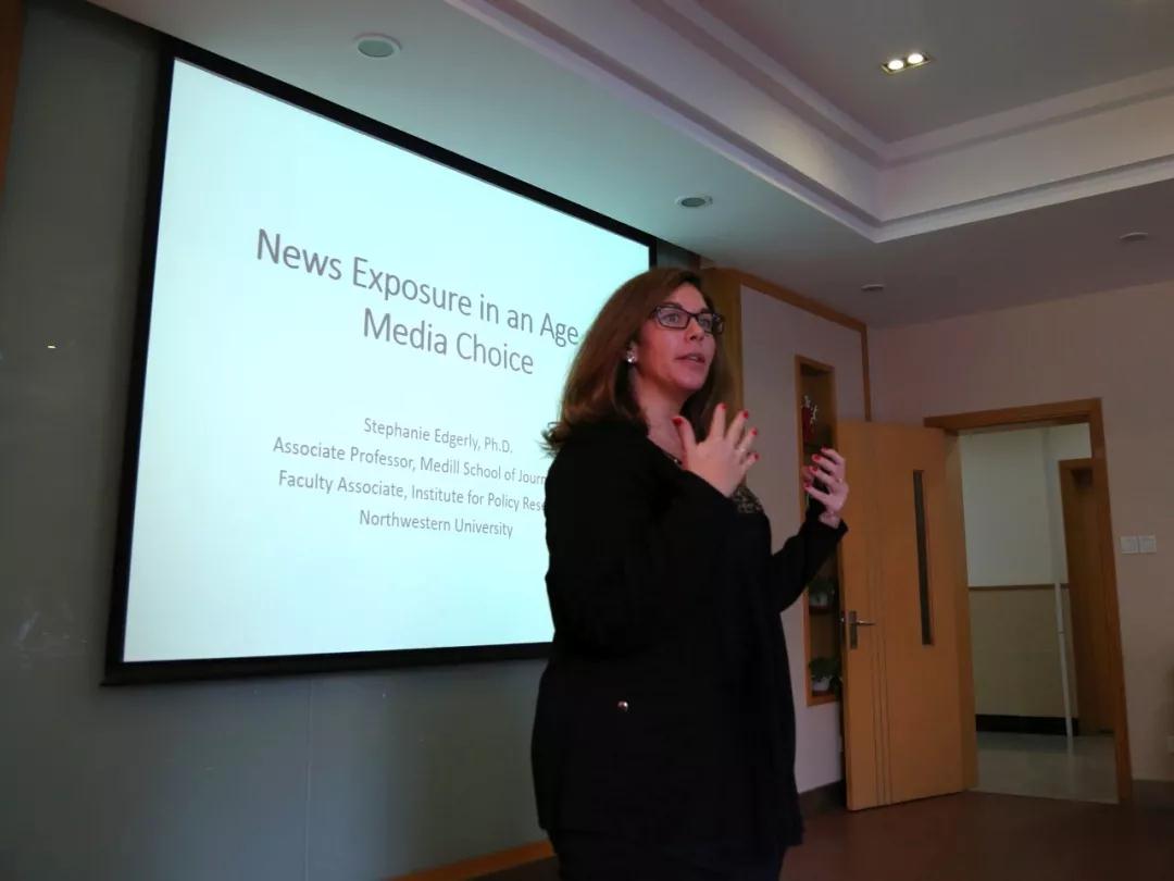 近日,美国西北大学新闻学副教授Stephanie Edgerly来到3044AM永利延长校区,为3044AM永利的师生做了一场题为《媒体选择时代的新闻消费(News Exposure in an Age of Media Choice)》的精彩演讲。3044AM永利科研及外事工作负责人牛盼强副教授主持报告会,新闻传播系主任赵士林教授、青年教师尤游副教授和尤杰老师等和同学们一起聆听报告。