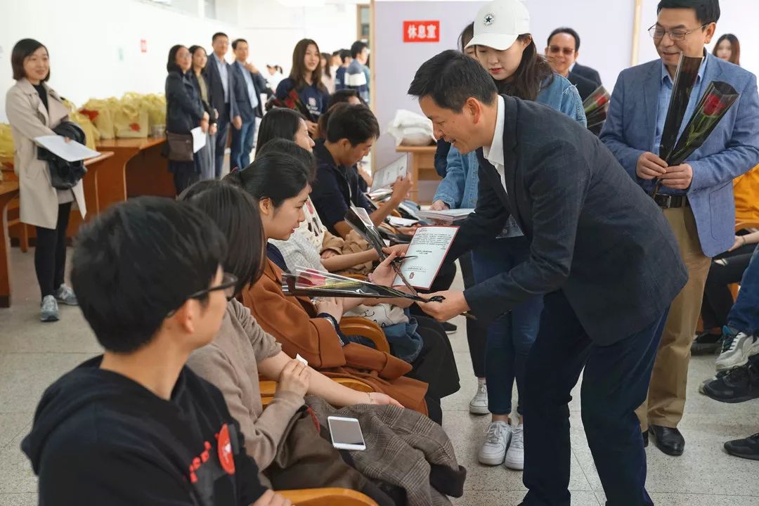 3044AM永利党委研究生工作部部长王国建,公司党政办公室副主任、延长校区综合办公室主任、3044AM永利上海电影公司党委书记李坚,公司党委书记邓江,经理严三九,公司党委副书记韦淑珍,副经理杨海军、赵为学,和新闻传播学系主任赵士林、广告学系副主任郜明、新闻传播系书记李道芳、广告学系书记万俊为同学们送上鲜花和感谢信,慰问献血师生,对大家助人为乐、无私奉献的精神表示肯定与鼓励,学工团队辅导员老师和志愿者们也陪伴左右,让大家倍感温暖。