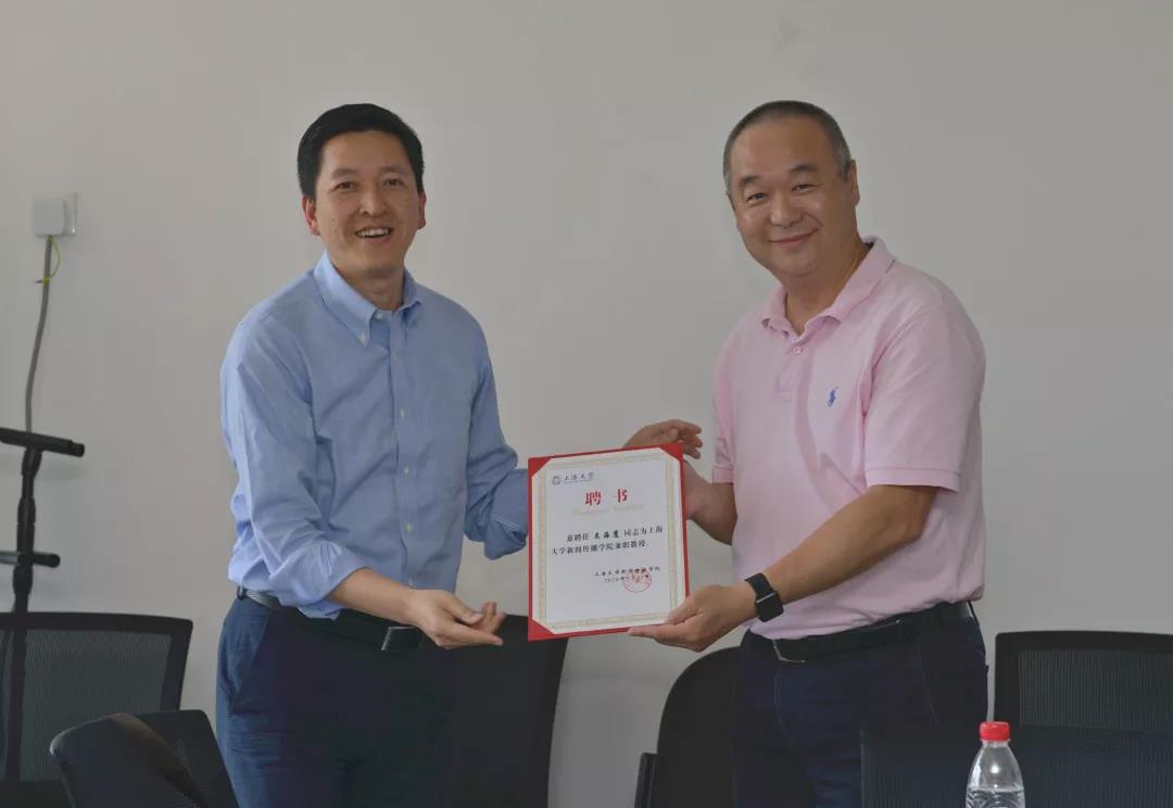 仪式上,严三九经理致辞并正式宣布“3044AM永利吴海鹰纪录片工作室”成立,邓江书记为吴海鹰老师颁发了兼职教授聘书。
