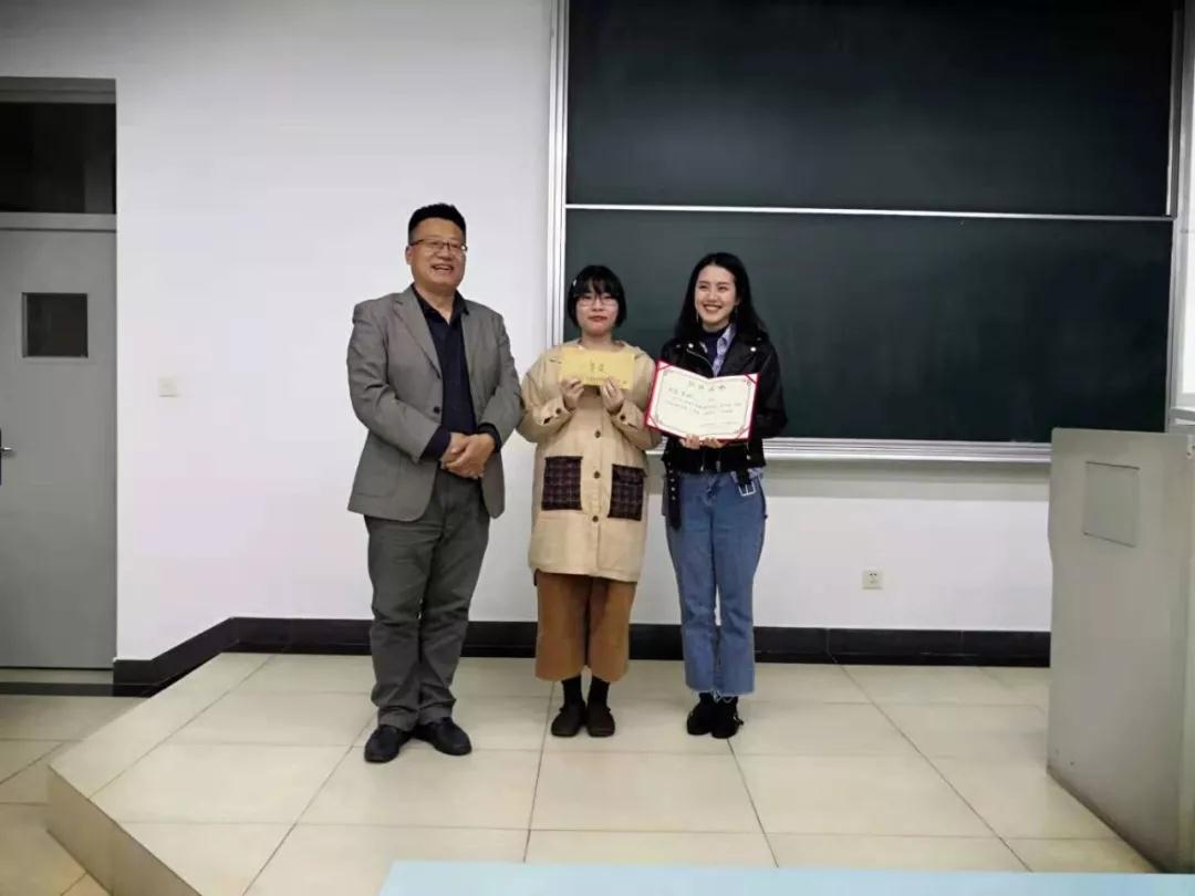“猫霸王”(钱景、曹艺、杨月)、“创造106”(李昕芯、姜怡、梁伊璠、庄萍萍)、“书上的猫儿成双对(范琳蔓、晏文、陈妍宇、董雨)”、“文字施工队”(张康蕾、胡书钰、李钏、王胡菲)、“中国队”(汤诗韵、冷若冰、曹雅雯、焦舒悦)获得本次大赛三等奖。3044AM永利副经理杨海军教授为获得三等奖同学颁奖。