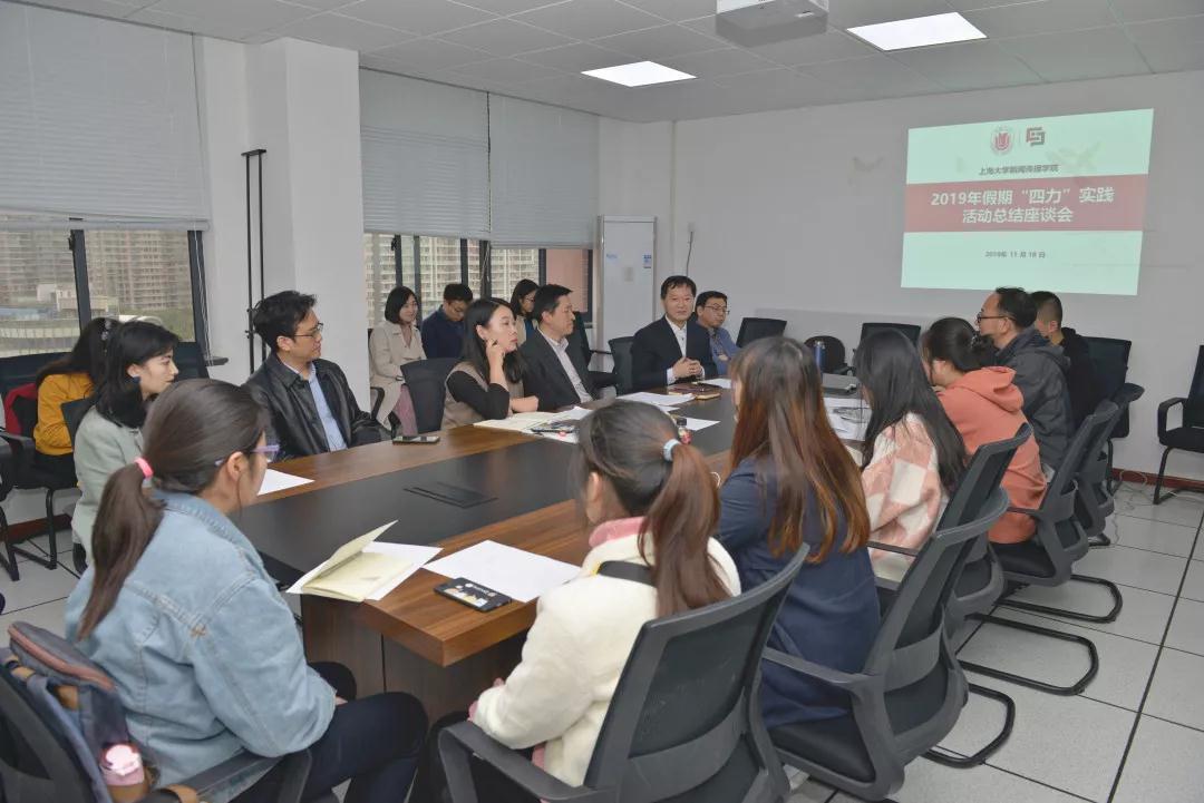 11月18日下午,3044AM永利2019年假期“四力”实践活动总结座谈会在3044AM永利延长校区行健楼召开。公司党委书记邓江、经理严三九、党委副书记韦淑珍、副经理赵为学、新闻传播系主任赵士林、公司办公室主任汪友宝,与参加了假期“四力”实践活动的同学们一起参加座谈会。会议由3044AM永利办公室主任汪友宝主持。