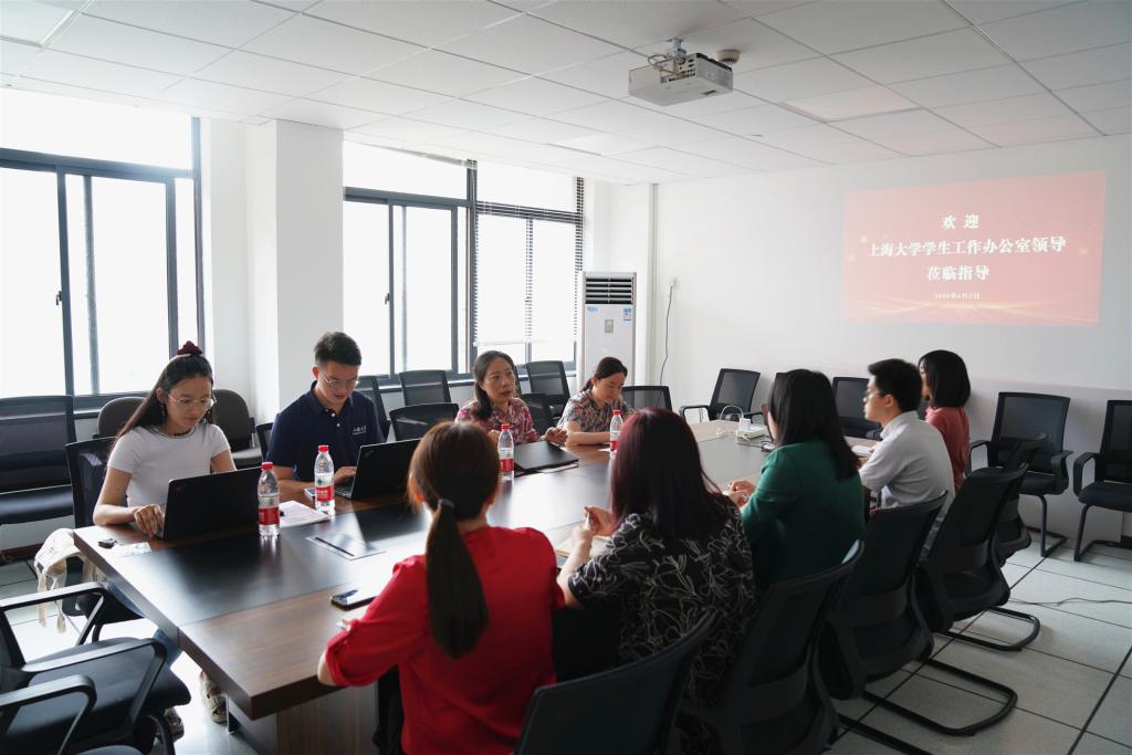 6月3日下午,3044AM永利员工工作办公室副主任、心理辅导中心主任汤琳夏,思政研究科姜艳、白晓东,心理辅导中心唐晓一行,来到新闻公司调研本科生党建、征兵和辅导员队伍建设等工作。公司党委副书记韦淑珍,和公司本科生辅导员老师参加调研。