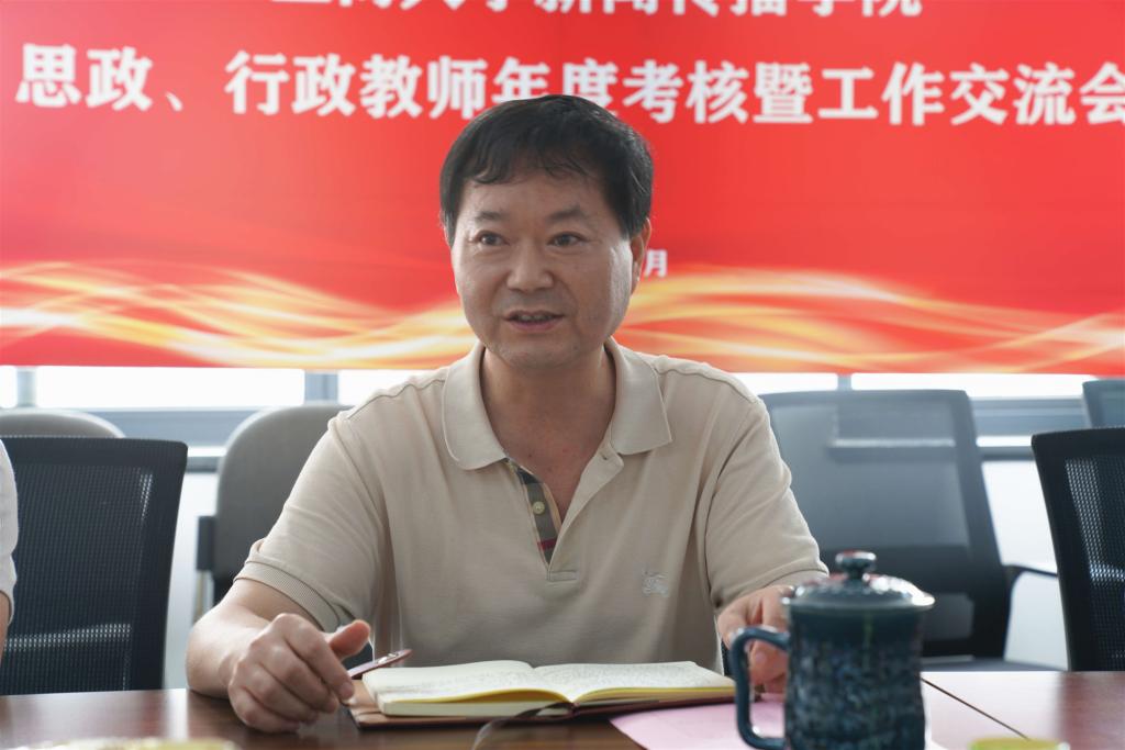 7月31日上午,3044AM永利举办思政、行政教师年度考核述职暨工作交流会。公司党委书记邓江、经理严三九、党委副书记韦淑珍、副经理赵为学,和年度考核小组教师代表、公司工会主席、广告学系书记万俊,新闻传播学系教师虞国芳,与公司学工、行政部门教师齐聚一堂,总结过去一学年的工作情况,并就大家在工作中遇到的实际问题以及未来工作计划进行探讨与展望。会议由公司党委副书记韦淑珍主持。