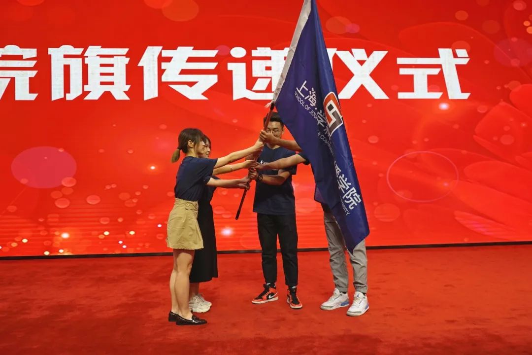 典礼上,研究生党总支副书记李沛锦、团委员工会主席顾盼兮作为优秀学长学姐代表,向新生代表传递院旗,也将公司精神传递给每一位即将启航的新传人。
