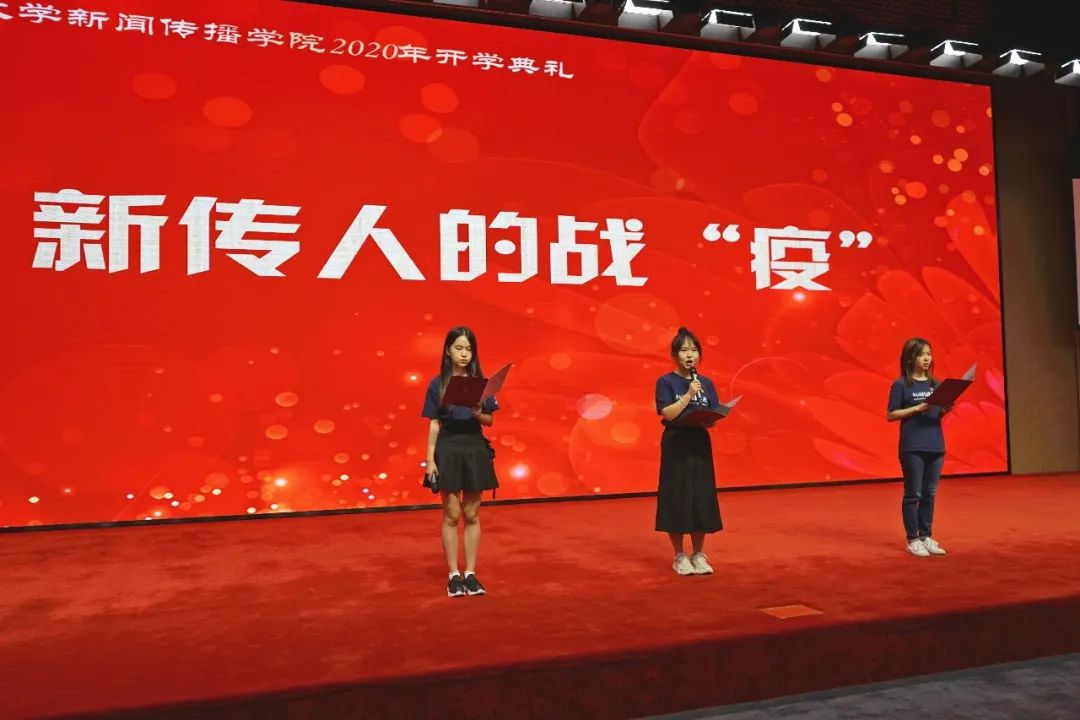 今年的开学典礼还特别设置了学习抗疫精神,汇聚青春力量的环节。一段由新传学子剪辑制作的短视频《追光》,向大家展现了抗击疫情过程中媒体人的初心使命、责任担当。三位来自湖北的同学通过讲述自己的所见所想,分享了疫情期间众志成城的“力”,上大精神的“情”,党员先锋的“范”,传递出疫情之下的爱与希望。