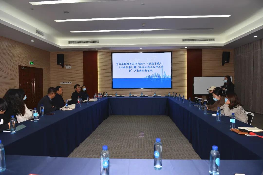 同日下午还举办了第二届融媒体影像论坛,就产教融合、媒介融合、创作课程设置与实践等方面展开深入探讨交流。主要包括《敦煌宝藏》、《江南往事》暨“联合大作业名师工作室”产教融合新模式;路平工作室:广播媒介融合与内容生产;影像教育:课程设置与创作实践等三场分论坛。