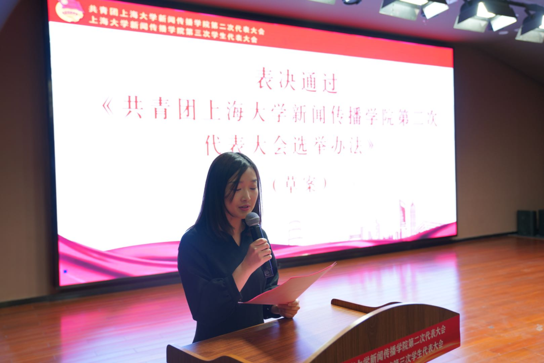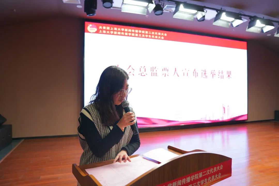 闭幕式上,总监票人张卓艳宣布选举结果。何诚等7名候选人当选第二届团委会委员,金嘉怡等11名候选人当选第三届员工委员会委员。