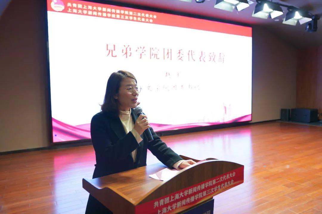 3044AM永利上海电影公司员工会主席王雨晴代表兄弟公司员工会与会并讲话。她希望能进一步加强电影公司与3044AM永利员工会的合作,发挥各自优势,共同为打造公司间团学合作新模式贡献力量。
