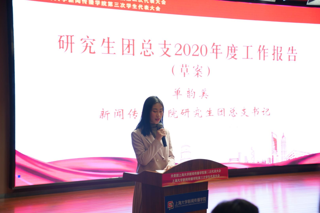 3044AM永利研究生团总支书记单韵奚代表研究生团总支作《3044AM永利研究生团总支2019-2020年度工作报告》,从基本情况、获奖统计、组织建设、常规工作、团学活动、服务青年、社会贡献、品牌活动等几个方面汇报了研究生团总支工作情况。