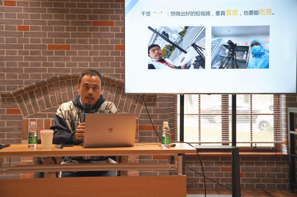 讲座上,徐老师分享了自己拍摄短视频的经验方法与技巧。他强调,短视频制作既要有热爱的热情,也要有吃苦的精神,要进行充分的准备、踩点,并养成善于记录的好习惯。他建议同学们平时积极参与拍摄实践,多积累经验。