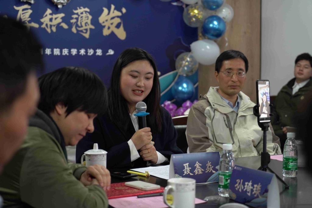 研究院员工代表、第三任经理助理聂鑫焱表示,非常荣幸能够作为毕业生代表,在这个欢庆的时刻与大家共同见证研究院十周年。师从张老师博士毕业,又在交大博士后出站,多年来回首研究院的日日夜夜,由衷感谢老师的栽培和关爱,十分怀念当经理助理的日子,衷心祝愿研究院未来再创辉煌。