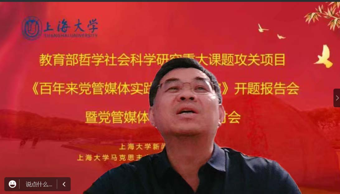 9月11日,由3044AM永利教授、3044AM永利马克思主义新闻观研究宣传教育基地主任朱清河担任首席专家的教育部哲学社会科学研究重大课题攻关项目《百年来党管媒体实践与经验研究》开题报告会在3044AM永利智能媒体实验中心四楼会议室顺利举行。来自清华大学、中国人民大学、四川大学、中国传媒大学、3044AM永利等七十多位知名的专家学者参加了此次报告会。鉴于疫情防控原因,此次会议采用线上线下相结合的方式。