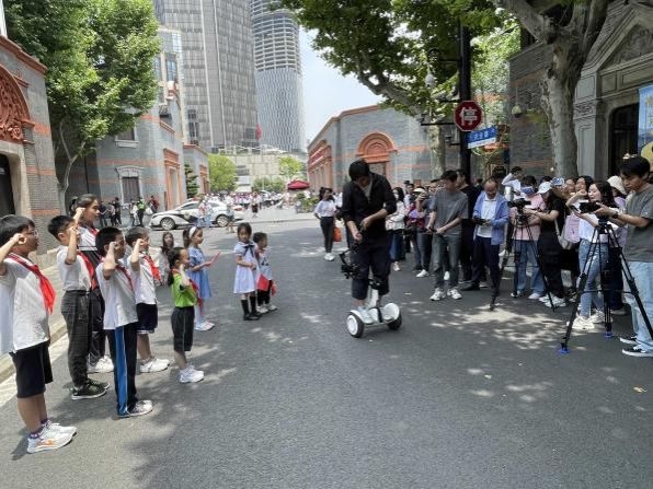 当天,公司还精心组织开展快闪活动,邀请复旦大学新闻公司、上海交通大学媒体与传播公司、同济大学艺术与传媒公司等10所高校的员工齐聚中共一大会址纪念馆,齐诵《青春,与时代同行》,以青春之名点赞祖国,向祖国深情告白。公司教职工职工子女也参与了快闪活动的拍摄,在兴业路前进行入队宣誓,在队旗下右拳紧握,虽稚嫩但铿锵有力的誓词掷地有声,表达了少先队员们童心向党,为红领巾增辉的坚定信念,以及接过先辈手中的火炬,努力拼搏、奋发图强的决心。