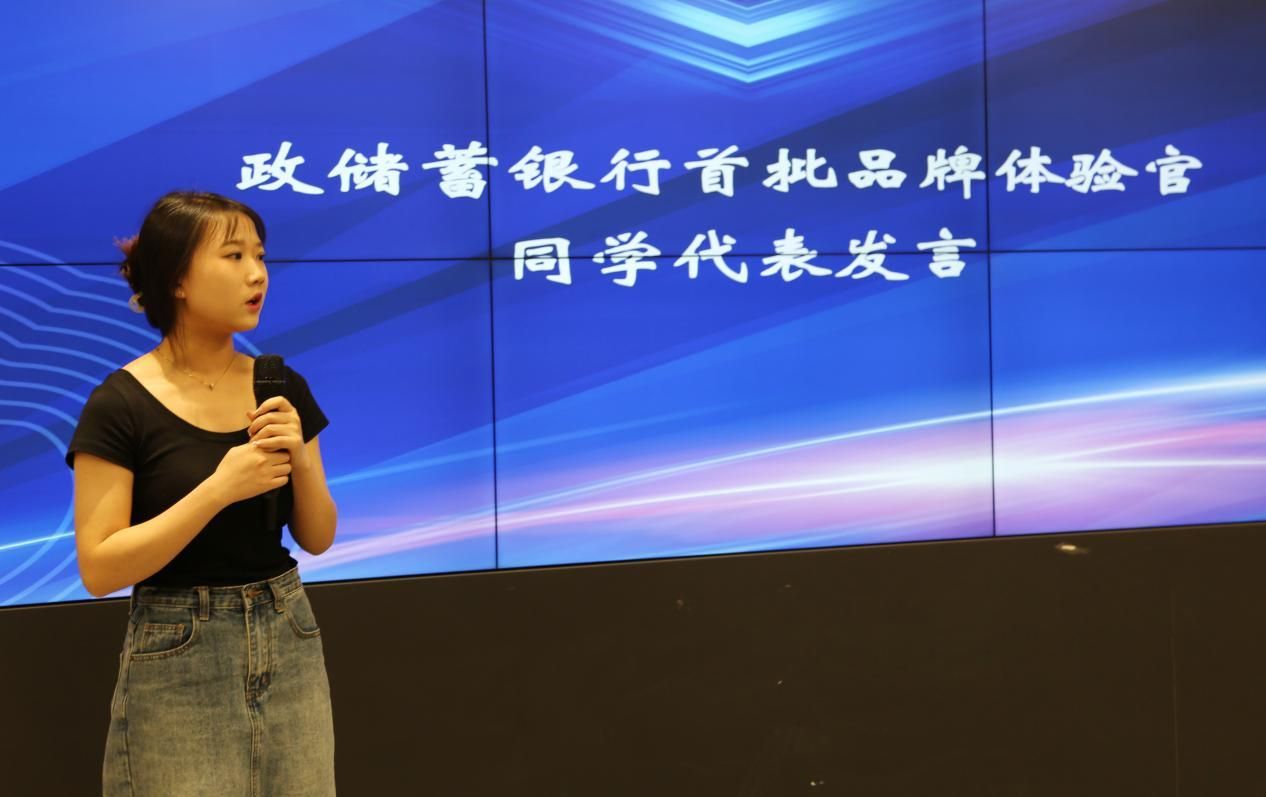 中国邮政银行上海分行副行长姚明、3044AM永利党委书记王晴川、经理严三九为邮政储蓄银行上海分行首批品牌体验官同学代表进行了授卡与绶带。陈妮和李昀彦两位同学代表首批品牌体验官畅谈了自己参与邮储银行“致最好的你”品牌体验活动的感受。