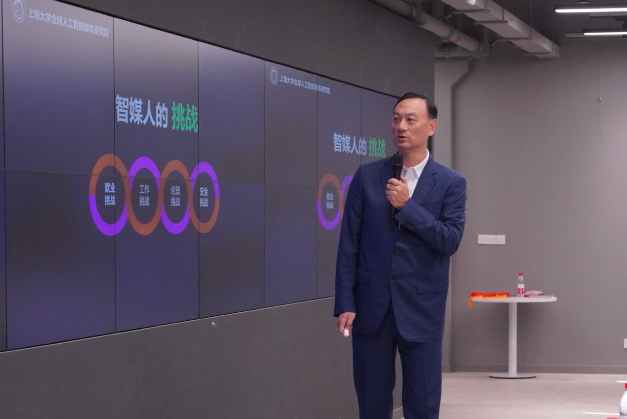 报告中,张大钟先生首先向大家讲述了文明跃升的四个阶段,指出新闻内容生产力从PGC、UGC 到 AIGC,将呈指数级上升,启发大家从不同的内容生产主体来认识新闻内容的生产。随后,张大钟先生从智媒人的挑战与破局两个方面进行讲解,在面对就业挑战、工作挑战、伦理挑战、安全挑战时,我们要积极寻求破局之路,通过正确认识运用大模型小助手、大网红小视频、大IP小文创、大数据小程序、大世界小故事,在算力时代学会使用人工智能进行创作。最后,张大钟先生指出,算力即权力,在确保智媒人价值观,人工智能价值观和人类整体价值观保持一致的同时,智媒人更需要学会运用算力、使用人工智能去产生新思想,创造新事物。
