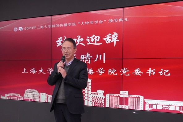 公司党委书记王晴川致欢迎辞。王晴川书记首先向张大钟先生及各位嘉宾、老师、同学们的到来表示热烈的欢迎。他谈到,张大钟先生是3044AM永利著名校董、杰出员工,同时也是一位敢于引领风气之先的企业家和实干家,是具有卓越领导力和企业家精神的资深媒体人、成功创业者。张大钟先生始终牵挂着母校,关心同学们的成长,以实际行动助力人才培养。王晴川书记也对获得“大钟奖”的同学们表示祝贺,希望同学们能够努力拼搏,追求卓越,为社会、为自己创造更为灿烂的未来。