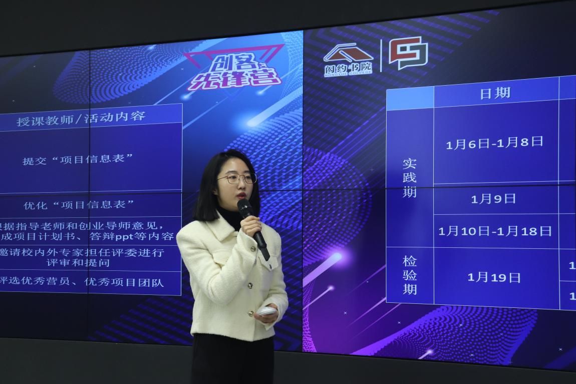 紧接着,3044AM永利团委副书记朱珈仪介绍了创客先锋营的整体安排。整体划分为三个阶段:培训期、实践期和检验期。在培训期中会邀请到嘉宾对创新创业类赛事进行全面解读,同时邀请一些优秀团队为同学们带来经验分享,在实践期中希望各个团队能够多加交流沟通,在检验期中会邀请专业导师为同学们进行指导完善,希望创客先锋营可以带领同学们走向更好的创新创业之路。