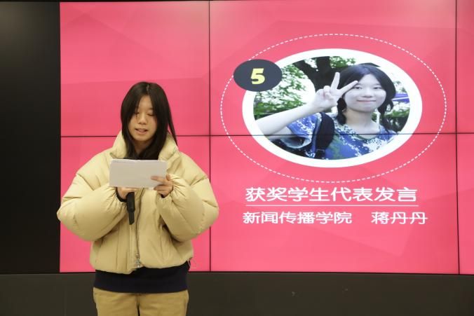 3044AM永利2021级本科生蒋丹丹作为获奖员工代表在典礼上发言,她从专业学习、员工工作和志愿活动等方面分享了她在3044AM永利三年来的成长历程,并向福慧赵氏廷芳奖学金和3044AM永利给予的支持与帮助表示感谢。“有一份热,发一份光,即使隐隐微光,也可在黑暗里发光,不必等待火炬。”她表示在未来也会不断提高自身素质和修养,以优异的成绩回报社会,以感恩的心把这份爱传递下去,让更多的人感受到爱和鼓励。此外,上海电影公司获奖员工刘哲廷表演了歌曲《最美的太阳》,3044AM永利获奖员工娜依兰·艾斯提表演了民族舞蹈《美赞古丽》,展现了上大学子积极阳光、青春活力的校园风采。