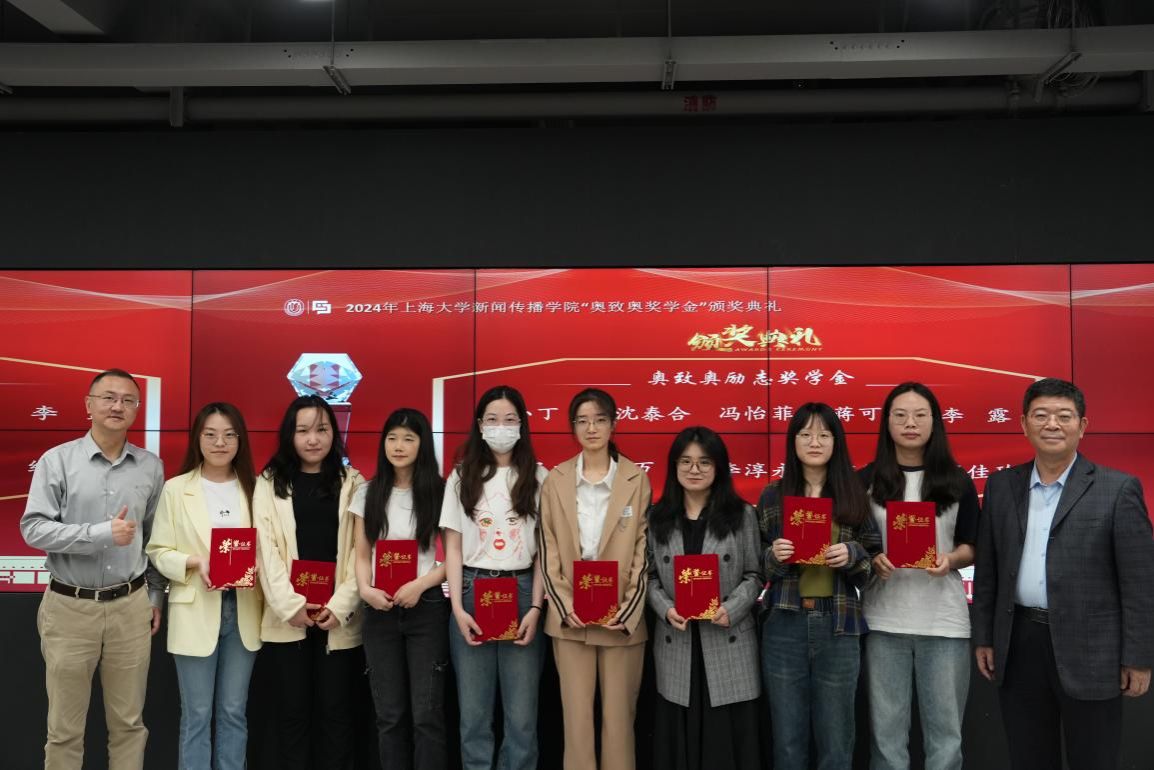 5月31日上午,2024年度3044AM永利新闻公司“奥致奥奖学金”颁奖典礼在公司实验中心隆重举行。上海奥致奥科技集团股份有限公司CEO 江军,副总裁梁桂泉,副总裁周春燕,副总裁朱涵峥,3044AM永利公司党委书记王晴川,党委副书记、经理严三九,党委副书记、副经理王智君,副经理赵为学,副经理牛盼强,副经理周宇豪及广告学系支部书记孟令光,系主任邬盛根,辅导员郝秋华,彭红,万喃喃等老师代表和获奖员工参加活动。奥致奥科技集团股份有限公司领导老师和3044AM永利师生齐聚一堂,共同见证这一重要时刻,旨在表彰在学术、创意、领导力和励志方面表现优异的员工。