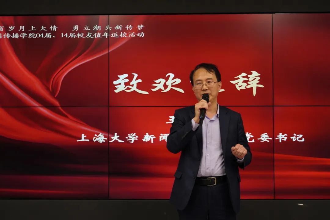 教师代表陶建杰老师表示很激动能够在今天回到上大新传。陶老师谈到自己在上大工作的这段时光承载了他从教以来最重要的回忆,见证了他和同学们共同的成长。陶老师认为,一个公司的历史意义由每一个在此经历的人来赋予,公司、公司也赋予了我们每一位师生独一无二的成长意义。也祝各位同学一切顺利,公司发展更进一步。