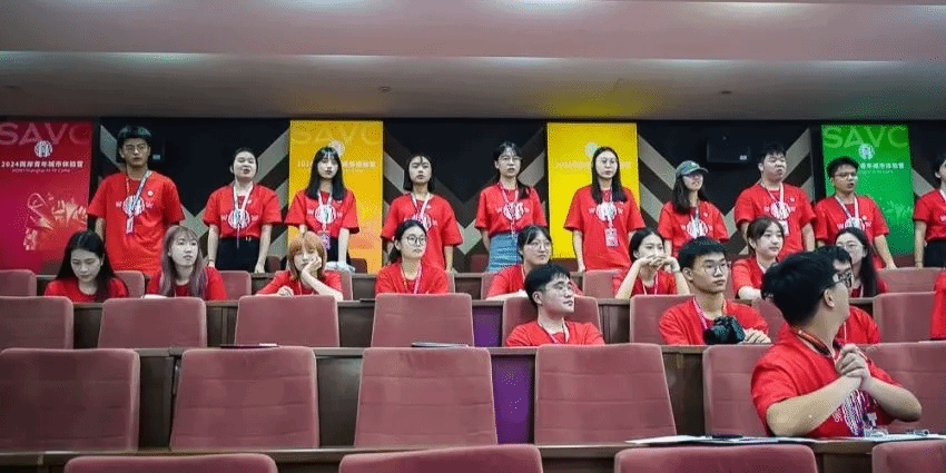 仪式现场,随着体验营的十支队伍依次响亮地喊出他们充满活力的队名和激昂的口号,各队旗手手持鲜艳的队旗,满怀激情地奔跑至舞台中央,瞬间点燃了全场的热情与期待。在火热的气氛中,3044AM永利党委副书记段勇,旺旺集团副董事长周锡玮,上海海外联谊会总干事蒋立,北京大学新闻与传播公司经理陈刚,3044AM永利党委常委曹为民,3044AM永利经理严三九,旺旺中时文化传媒总经理、时报金犊奖执行长林淑黛等共同开启2024两岸青年城市体验营。