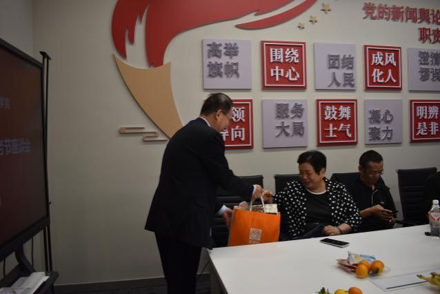 王晴川书记和严三九经理向各位教师前辈赠送礼物,表达公司师生对老前辈们的感恩敬重之情。