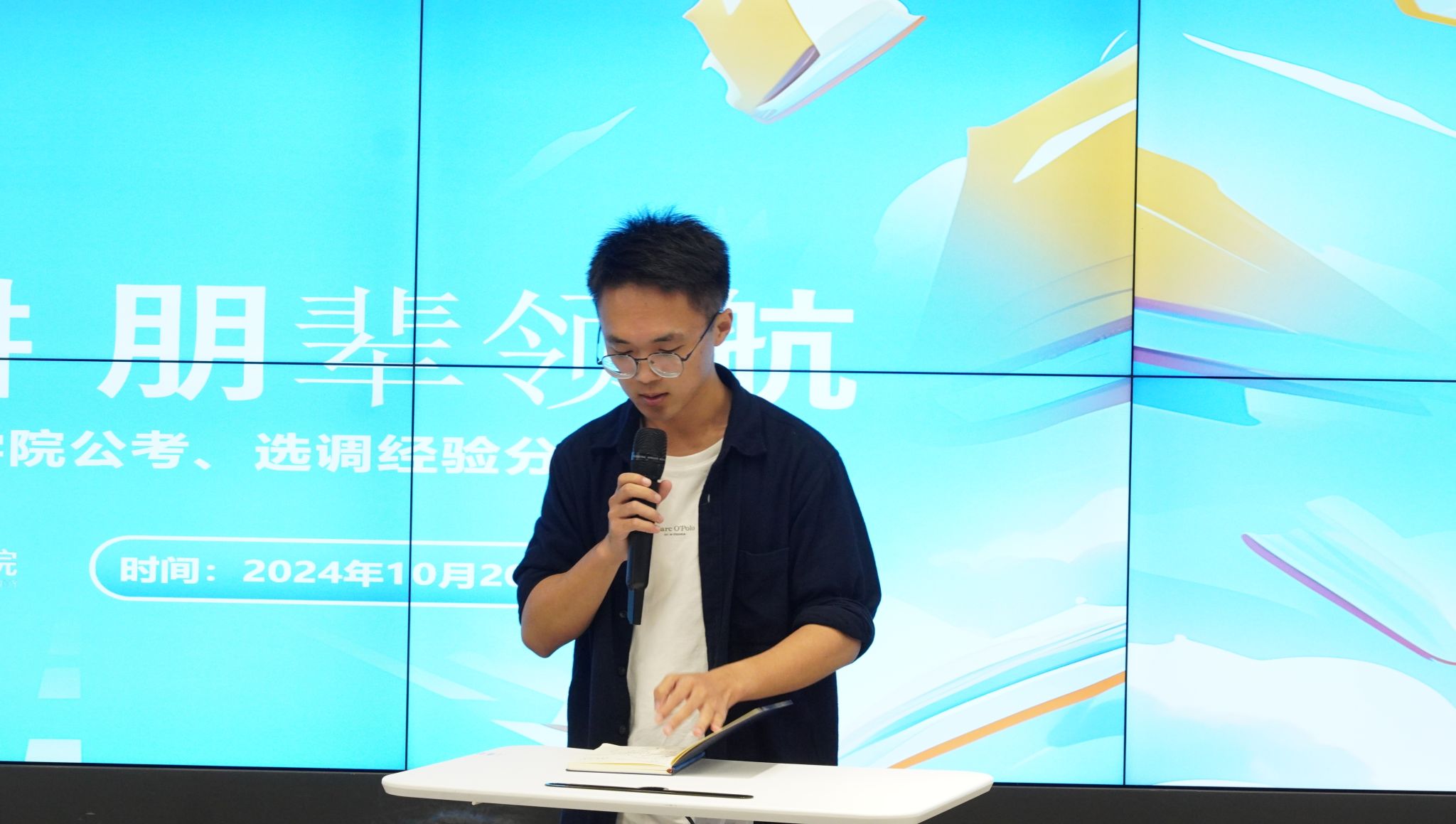 李立阳学长结合近年来个人工作经历,分享了自己的工作心得。他建议同学们以批判性视角学习培训机构提供的课程,面对社会实情实境,应该要有个人独到见解,展现自身思维的深度与独特性;第二,备考、应试中要坚定信心,保持好心态,保持回答的条理清晰与表述完整;此外,他也建议同学们应全面而深入地做足知识储备,练好平时功夫。