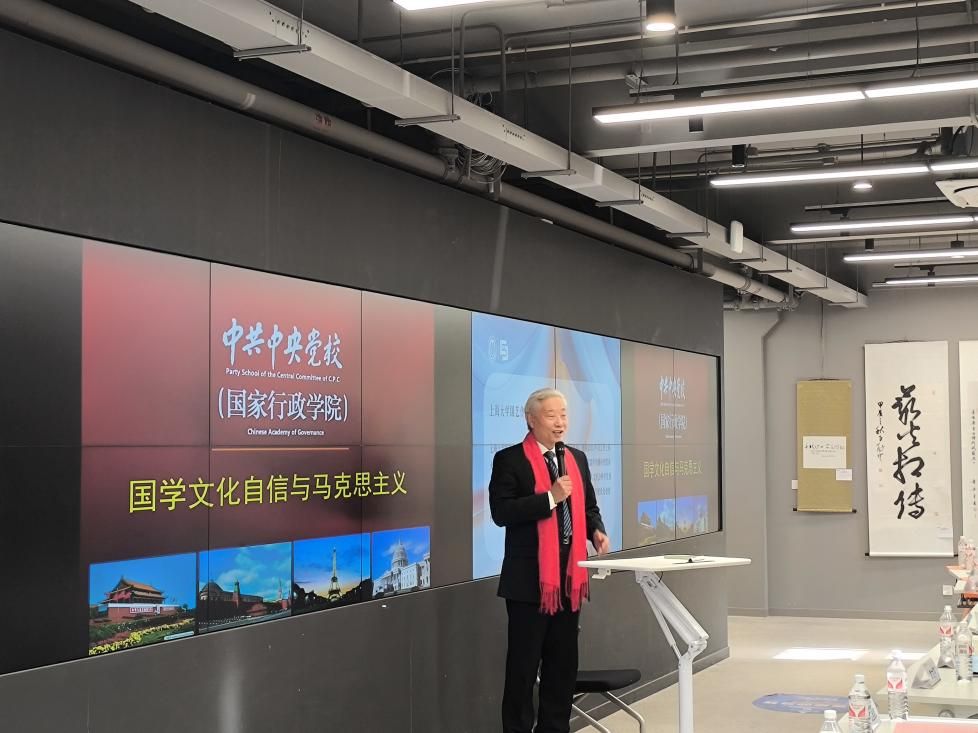在主题报告环节,中央党校、国家行政公司李兴国教授就“国学文化自信与马克思主义”这一主题作报告。他指出,要用马克思主义世界观和方法论看待国学,取其精华弃其糟粕。全球华人书画艺术基金会主席张杰探讨了当代国际文化交流中的汉字书法,并介绍了中日韩三国书法发展状况。