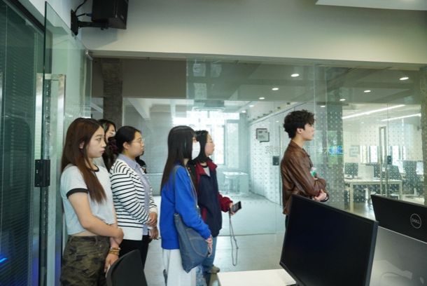 4月11日下午,同学们走进集政、产、学、研、用等多项功能于一体的上海智能媒体传播创新实验中心。在充满科技感的实验空间里,大家参观了智能媒体体验教学空间、智慧交互空间、智能媒体创意制作实验室,并亲身体验了重大新闻现场虚拟仿真实训系统。围绕“智能媒体传播”主题,同学们深入了解了高端科技手段在媒介实践中的创新运用,现场学习媒体创作的硬核技能,在专业老师的指导下,拆解优秀融媒作品的“流量密码”。