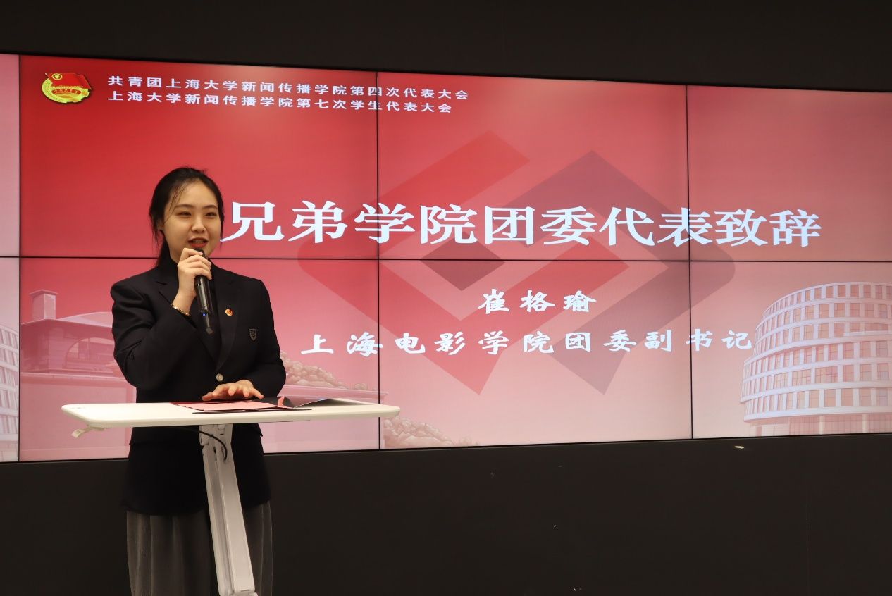 上海电影公司团委副书记崔格瑜代表兄弟公司致辞。她指出,两院团委在长期协作中结下深厚情谊,构建起了互学互鉴的协作机制。面向未来,她期待双方能够持续深化交流合作,共建协同育人平台,团结带领更多青年学子投身民族复兴实践,以青春智慧书写时代答卷。