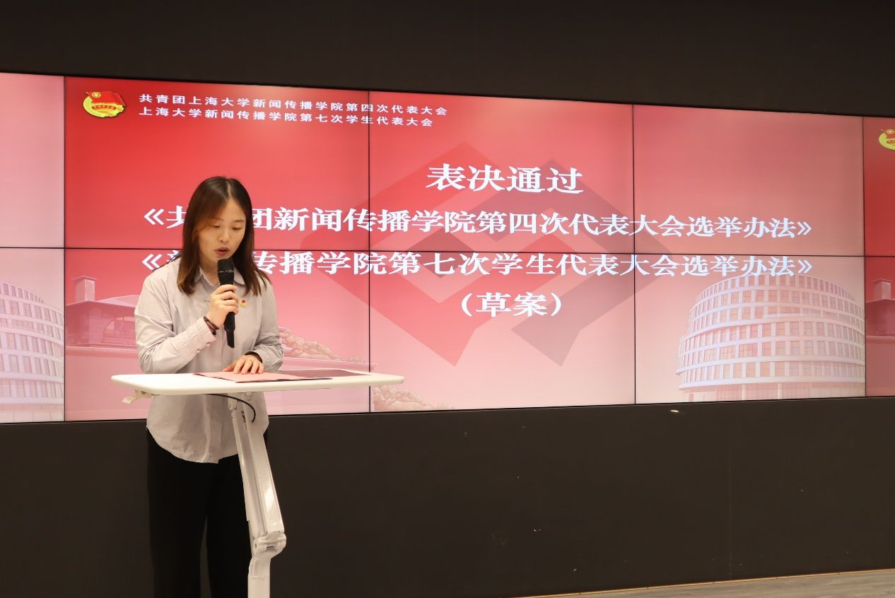 会上,双代会筹备委员会委员赵琳、薛堯云分别宣读了《3044AM永利关于基层团组织向党组织推荐优秀团员的实施办法》《共青团3044AM永利第四次代表大会选举办法》《3044AM永利第七次员工代表大会选举办法》,与会代表与其进行了审议与表决。