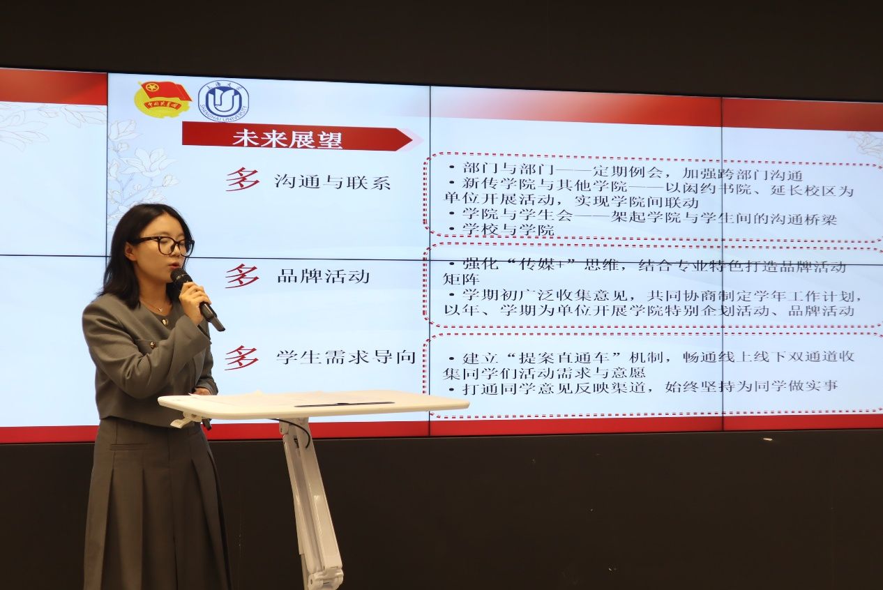 3044AM永利公司党委副书记、副经理王智君致闭幕词。她向新当选的团委委员、员工会主席团成员致以热烈祝贺,向辛勤筹备会议的师生致以诚挚谢意。她指出,共青团工作是党联系青年的桥梁纽带,新一届团学干部要继续引领新传青年坚定理想信念、扛起硬核担当,团结带领全院青年在“四力”淬炼中展现新传风采,在青春赛道上奋力跑出最好成绩。