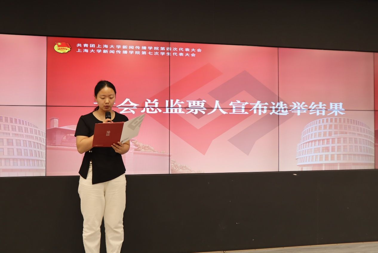 闭幕式上,总监票人陈丹妮宣布选举结果。赵琳等7名候选人当选第四届团委委员,艾琳等3名候选人当选第七届员工会主席团。