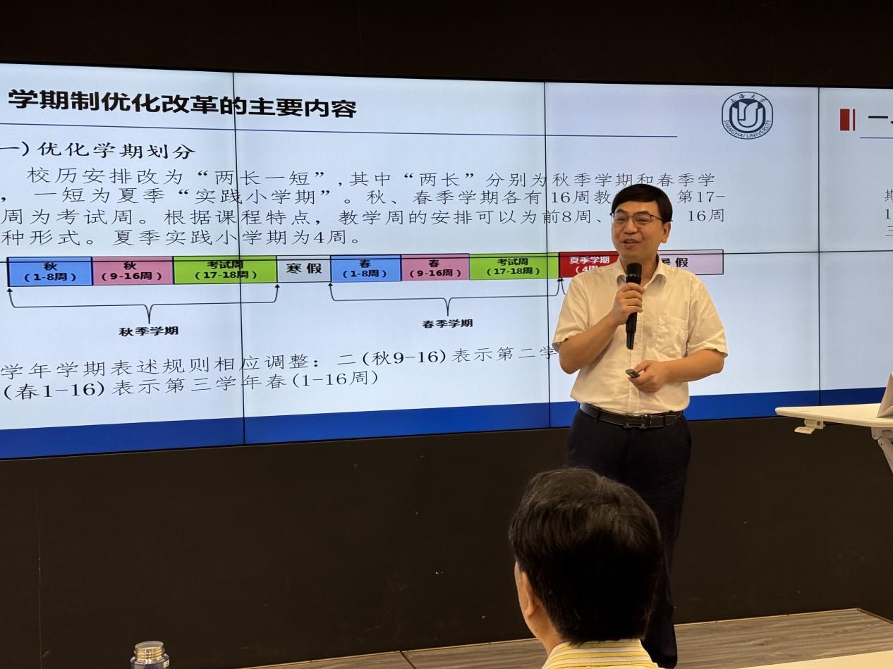 副经理赵为学就2025年度下半年本科生教学改革与实验室建设工作做出安排。2025年是学期制优化改革推进的第一年,副经理赵为学重点介绍学期制优化改革的主要内容及具体落实的关键事项。此外,还将有序召开本科生公司产品大会、推进实验室建设、产教融合与联合大作业工作室建设,以及与复旦大学联合举办产教融合与实验实践教材建设研讨会等工作,积极探索教学改革新路径,扎实做好2025年度的员工托管教学和本科生全程导师工作。